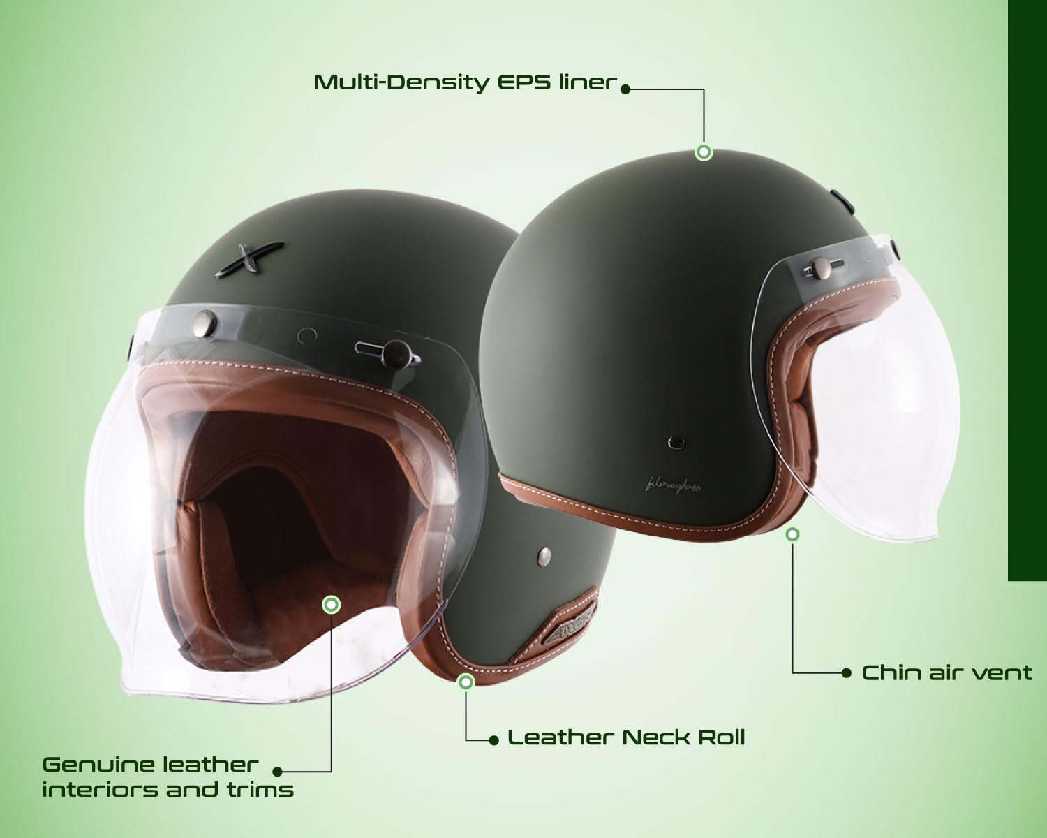 Retro Helmets are with a classic-legendary look. Retro’s are especially worn on traditional engines such as choppers, bobbers, cafe-racers, and many more. It is a complete entry-level open-face helmet with modern safety and production advancement with industrials standards in performance and style. There are different variations in colors to choose from. Heritage styling with modern luxuries. Traditional stitched Genuine leather edge trim and interior.