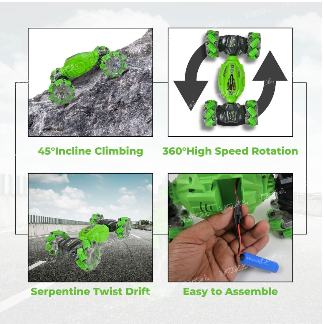 VIKRIDA GESTURE SENSING RC STUNT CAR BOYS TOYS FOR KIDS, 4WD, 2.4GHZ, 360° ROTATING, DUAL CONTROL MODES CONTROL TRANSFORMER TOYS TWIST CARS
